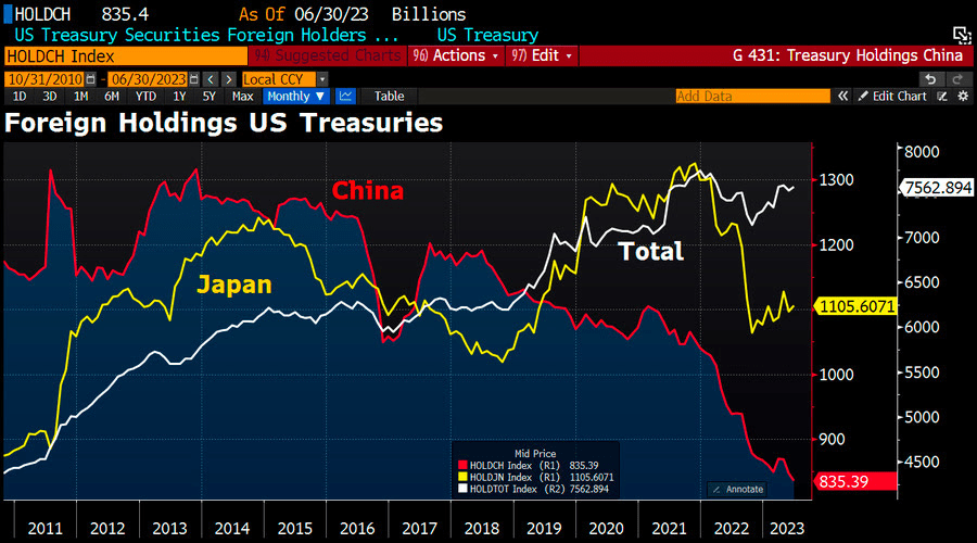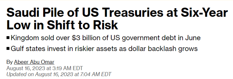 Pendant ce temps, la Chine et l’Arabie Saoudite se sont débarrassées des bons du Trésor américain :