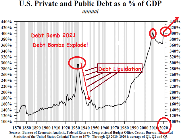 Une bombe de la dette a explosé vers 1929… et elle a détruit de nombreuses banques et entreprises. La bombe de la dette est aujourd’hui bien pire et pourtant malgré le soi disant resserrement monétaire il ne se passe rien!