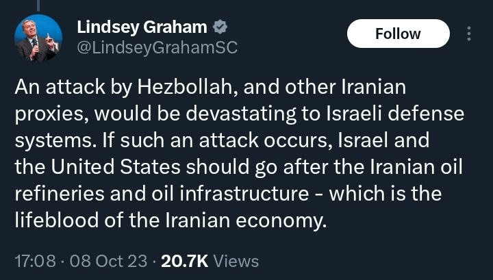 Mais bien sûr, selon les menaces de Lindsey Graham ci-dessus, cela pourrait aller beaucoup plus loin. Ils pourraient planifier une guerre entière pour paralyser l’Iran, au moins ses raffineries de pétrole, ce qui paralyserait l’économie iranienne et affaiblirait son influence.