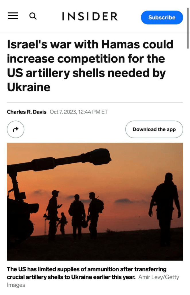 Les médias nous conditionnent déjà à la réalité selon laquelle les États-Unis devront utiliser leurs stocks de munitions précieusement épuisés pour Israël, en donnant la priorité à leur premier bien-aimé plutôt qu’à leur deuxième nouvellement baptisé. Vous pouvez facilement imaginer l’excuse qui en résulterait à l’avenir : « Nous avions des besoins plus pressants, nous ne pouvions donc plus financer/approvisionner l’Ukraine ! »