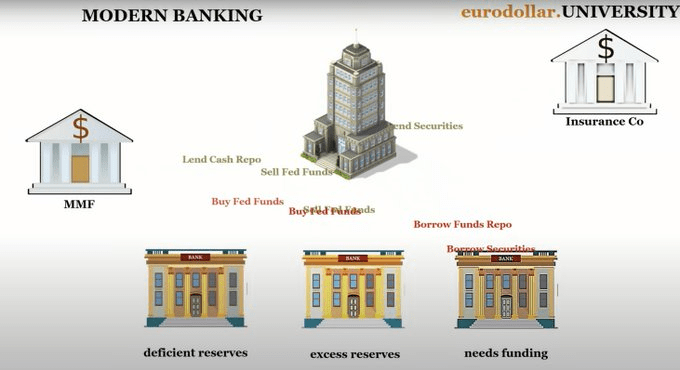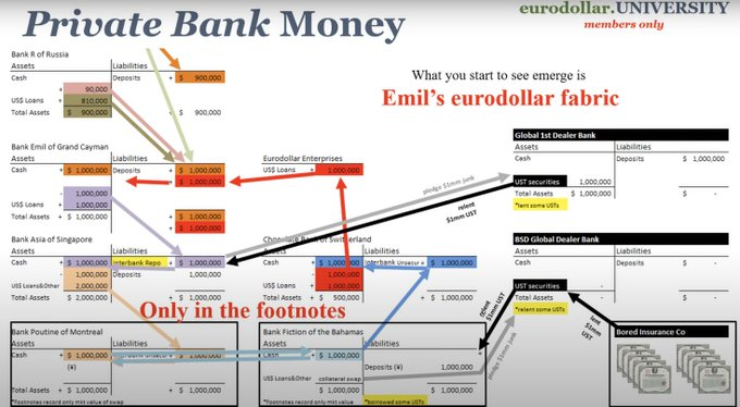 Il défend l’idée que l’euro$ est la vraie monnaie mondiale, que c’est elle qui est effectivement importante, que les banques centrales n’ont qu’un faux pouvoir monétaire que ce qui compte au niveau mondial c’est la capacité bilancielle des banques, l’appétit pour le risque, les value@risk et les collatéraux.