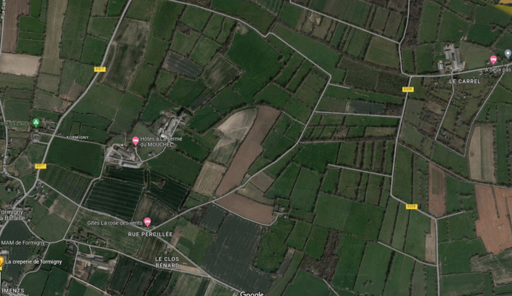 Voici une vue satellite de cette zone près de Caen, que les alliés ont dû traverser après leur débarquement :