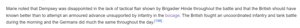 J ajouterais une précision de l’ Opération Cobra de Juillet 1944 qui a permis aux américains de percer le bocages normands (qui est basé de leur stratégie aujourd’hui ) :
