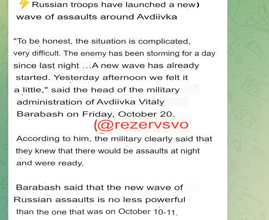 Yuri Podolyaka : Avdeevka : situation à 18h00 23/10/23
