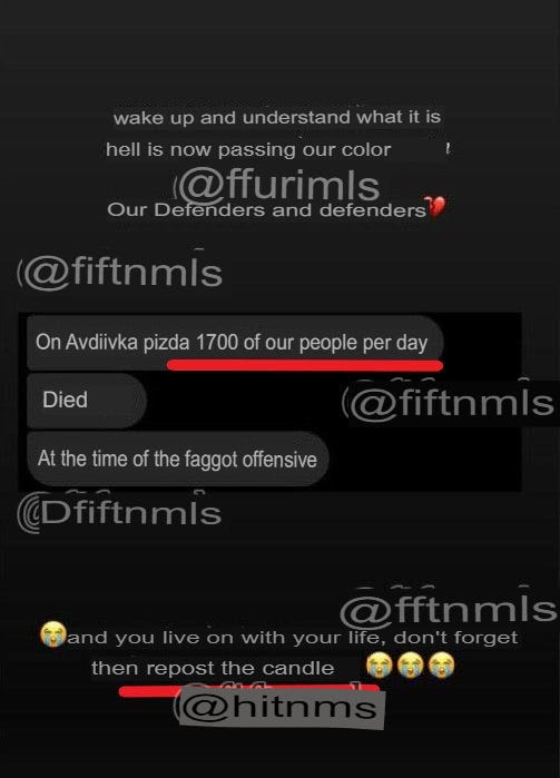 Oui, vous lisez bien . Le récit du soldat ukrainien indique qu’ils perdent 1 700 hommes par jour à Avdeevka. Et c’est KIA.