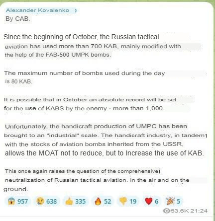En fait, même s’il ne concerne pas spécifiquement Avdeevka, ce nouveau message ukrainien donne une idée de l’ampleur récente de la campagne aérienne russe :