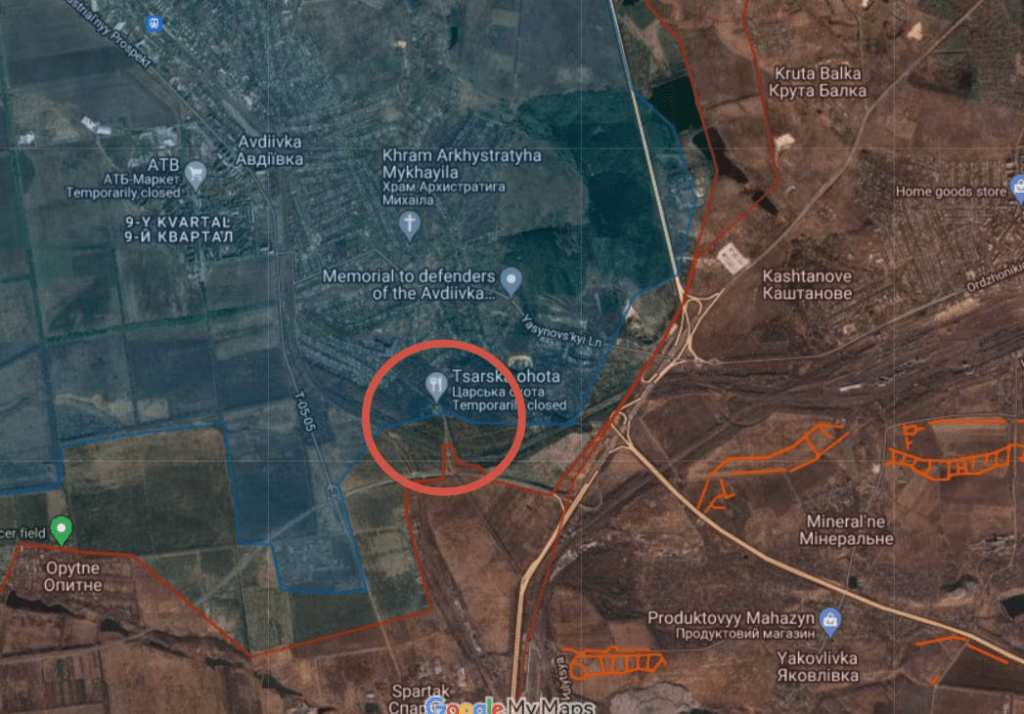 Examinons quelques derniers éléments. Vous vous souviendrez de la dernière fois que j’ai publié des mises à jour d’un combattant du groupement sud d’Avdeevka. Il fait partie du groupe qui capture la « chasse royale », comme certains l’appellent, ou Tsarska Okhota le souligne ici