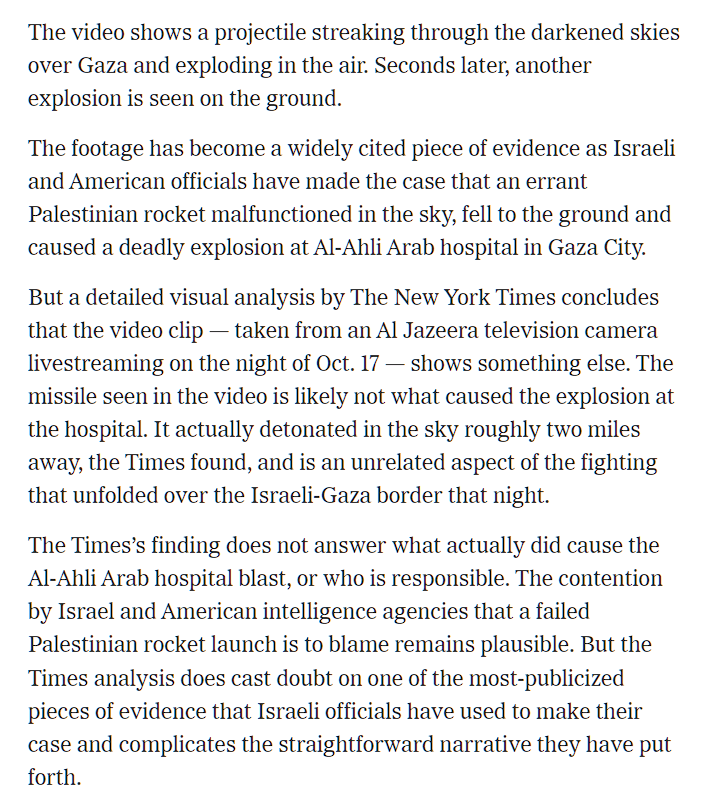 Coup de tonnerre. Le New York Times détruit les preuves les plus utilisées par Israël pour se disculper de la frappe sur l’HOPITAL!