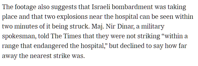 Le New York Times a qualifié de conneries les éléments de preuve clés diffusés par les sources israéliennes sur la frappe à l’hôpital, pour justifier leur affirmation selon laquelle il s’agissait d’une roquette de Gaza.