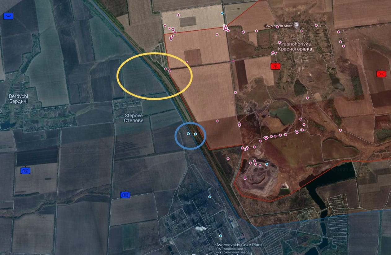 Les occupants ont réussi à contourner la voie ferrée vers l’ouest. Ils tentent maintenant de percer directement en direction de Stepovoy.