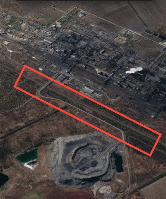 Il s’agit d’une vision inversée qui montre que les forces russes se sont implantées dans la bande forestière juste au sud du terril et ont directement encouragé la cokerie