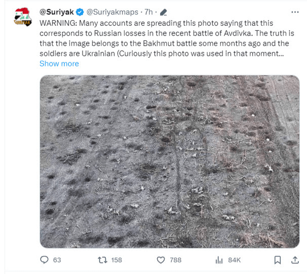 De plus, comme toujours, les comptes pro-UA choisissent son seul message critique mais ignorent le message qu’il a publié juste après, ce qui prouve que l’Ukraine subit bien plus de pertes à Avdeevka.