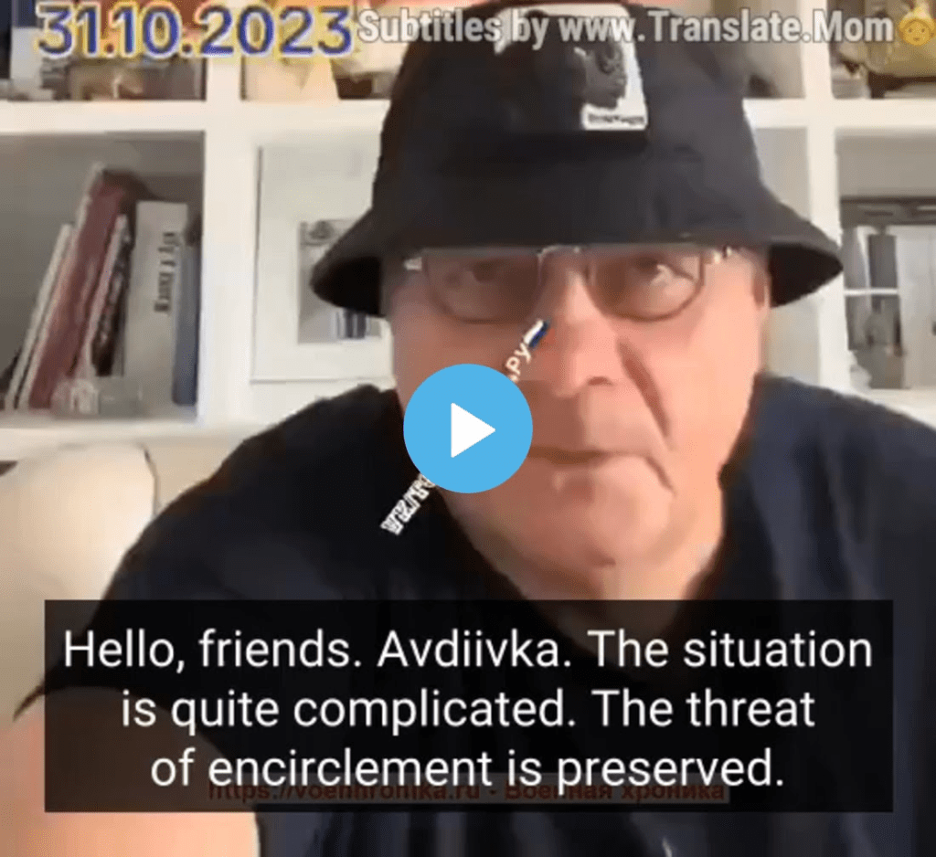 Je quitte Avdeevka avec ce dernier message ukrainien, qui donne une idée de la teneur de la bataille de la part de l’ancien commandant adjoint du bataillon Azov, Ihor Mosiychuk :