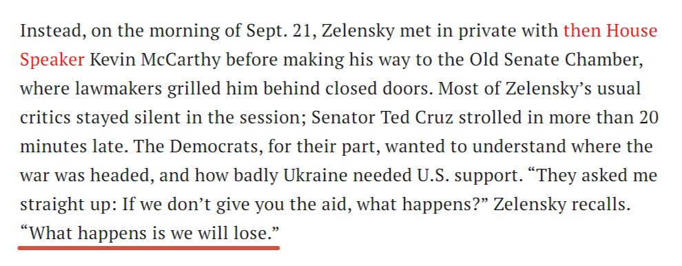 Zelensky admet sans détour que s’il n’obtient pas d’aide supplémentaire, l’Ukraine sera perdante