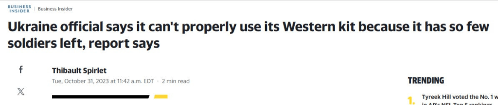 Mais l’article épouvantable continue, confessant que le manque de main-d’œuvre est devenu si grave pour l’AFU que même si toutes les armes les plus récentes en provenance de l’Occident étaient livrées, l’Ukraine pourrait même ne plus avoir les hommes pour les utiliser :