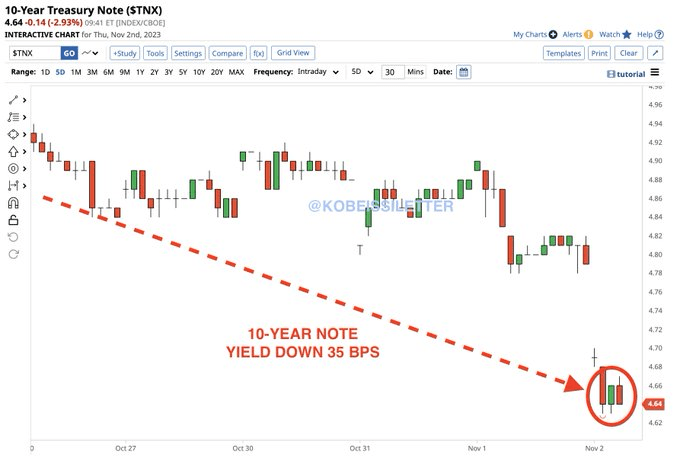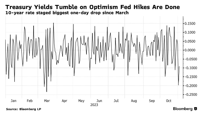 La chute de bourses et des magnificent seven, et les perturbations sur le marché des Treasuries à long terme imposaient cette déclaration de: the job is done. Il fallait faire chuter les taux longs en particulier sur le phare que constitue le 10 ans du trésor.