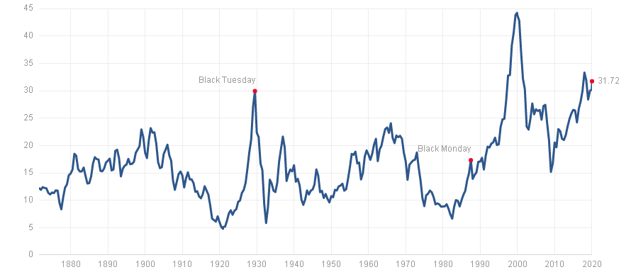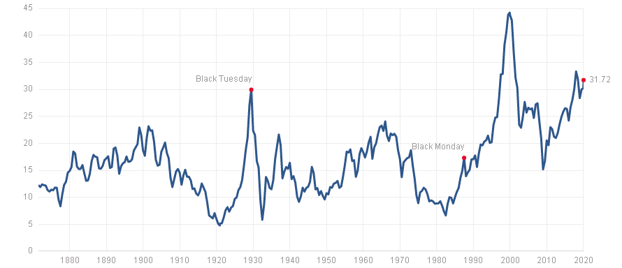 À la fin de la 2ème révolution industrielle en 1932, Shiller PE est tombé à 5X.
