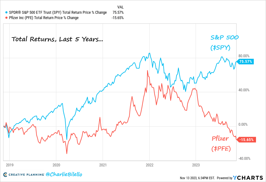 L’action Pfizer s’était envolée le 9 novembre 2020 de plus de 7% lorsque que le laboratoire américain avait annoncé que son vaccin développé avec la compagnie allemande BioNTech – qui avait pris 13,91% – était «efficace» à 90% contre le Covid-19…Un p’tit joueur !