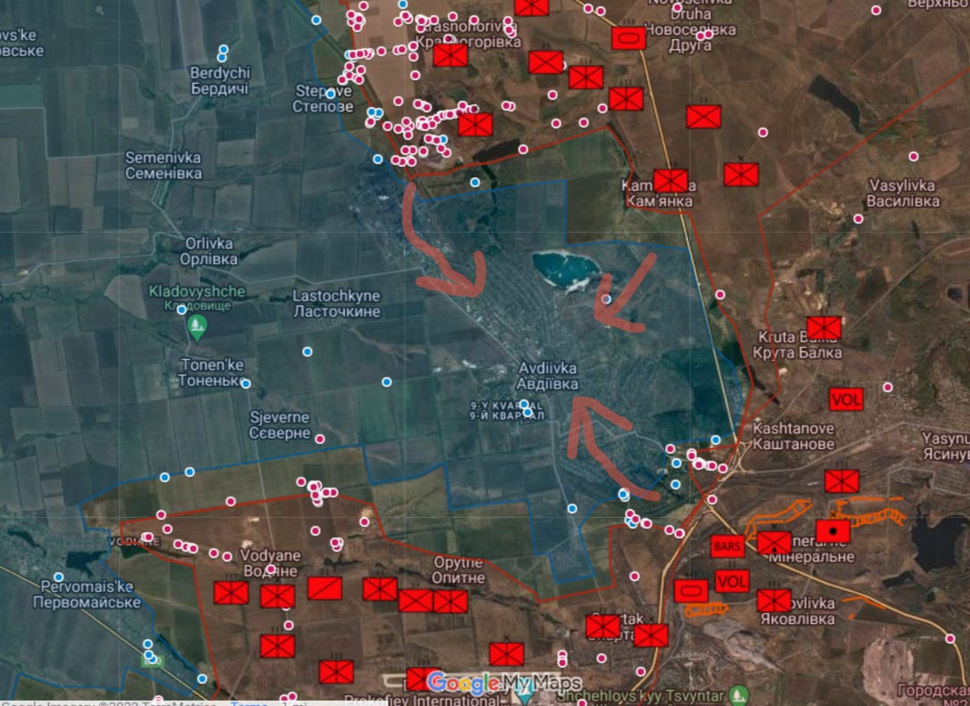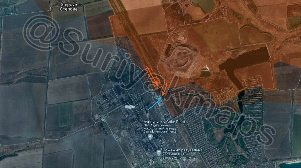C’est pourquoi il y a de fortes chances qu’Avdeevka tombe à la suite d’une double pression, non pas de la part de Severne et de Stepove, mais plutôt des troupes de la zone industrielle du sud qui progressent pour se lier aux troupes qui entrent dans la cokerie.