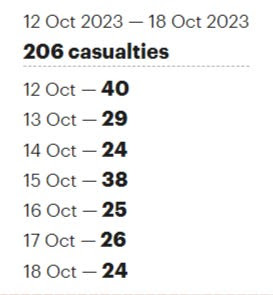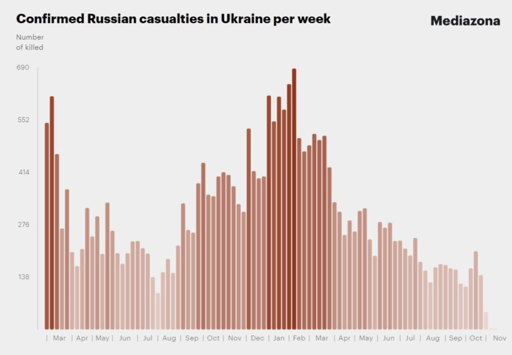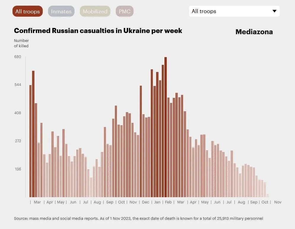 Enfin, pour que les choses restent justes et équilibrées, rappelez-vous que j’ai déjà publié sur MediaZona le faible nombre de victimes des forces russes en octobre comme preuve de l’exagération des pertes à Avdeevka :
