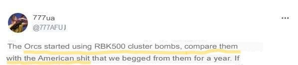 Du côté ukrainien, en revanche, ils auraient atteint des niveaux catastrophiques en raison de l’utilisation intensive des armes à sous-munitions russes. Des vidéos choquantes comme celle – ci ont commencé à faire le tour peu après l’apparition de vidéos d’attaques à fragmentation russes. L’AFU semble comparer assez favorablement les nouveaux clusters russes à ceux américains