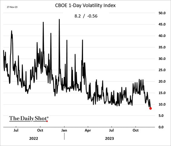 Les vraies choses importantes se passent et se jouent au niveau de l’effet de levier, au niveau du maintien de l’appétit pour le jeu, pour le risque et de l’entretien du risk-on. Voila les vrais déterminants de la politique monétaire concrète, celle qui joue et produit ses effets . A la limite maintenir le VIX dans ses plus bas séculaires est exactement l’ action qui contre tout le resserrement monétaire!
