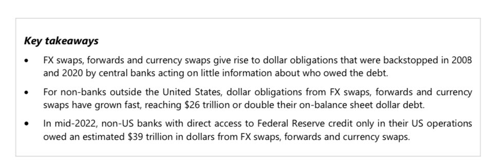 Je vous livre juste cette petite cartouche de la BRI qui elle, n’est pas très rassurée sur la stabilité du système mondial, elle nous parle de besoin de dollars … BESOINS astronomiques logés dans des endroits inconnus, opaques, loin de la connaissance des régulateurs et des contrôleurs! Et en plus souvent hors des juridictions américaines!