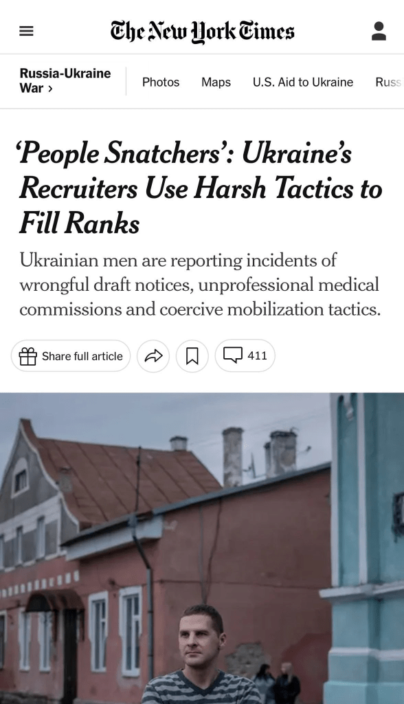 Alors que l’armée ukrainienne fait face à un nombre croissant de morts et à une impasse sur le champ de bataille, les recruteurs de l’armée sont devenus de plus en plus agressifs dans leurs efforts pour reconstituer les rangs, retirant dans certains cas des hommes de la rue et les emmenant vers des centres de recrutement en recourant à l’intimidation, voire à la force physique.