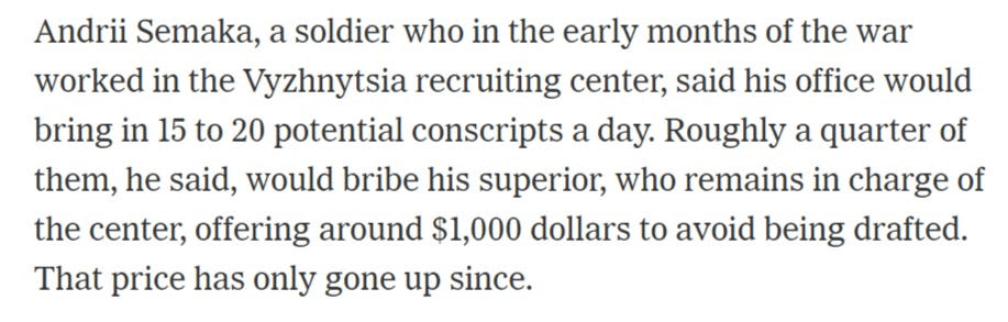 Rappelez-vous ce que j’ai écrit précédemment sur le fait que le problème numéro un de l’Ukraine n’est pas nécessairement de rassembler les « corps » eux-mêmes, mais de trouver des « corps » formés et motivés, capables de mener des assauts. Les commandants de l’AFU sur chaque ligne se plaignent de ce que leurs soldats ne sont littéralement pas capables d’attaquer. Défendre est beaucoup plus facile car on n’a pas besoin du même niveau de forme physique ni de coordination.