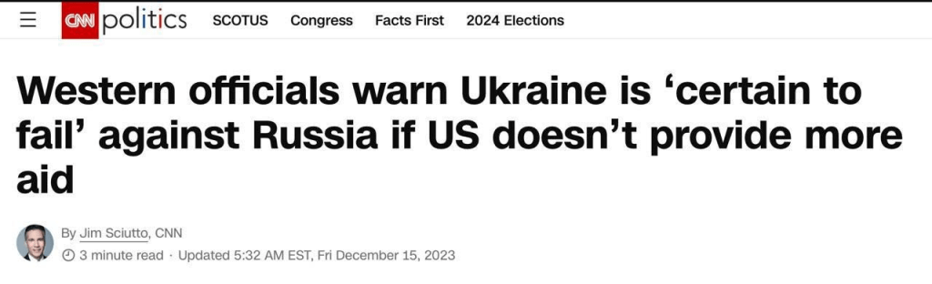 parmi les déclarations « qui donnent à réfléchir », CNN cite un haut responsable américain de la Défense déclarant que l’Ukraine pourrait non seulement subir des « revers », mais une défaite totale d’ici l’été: