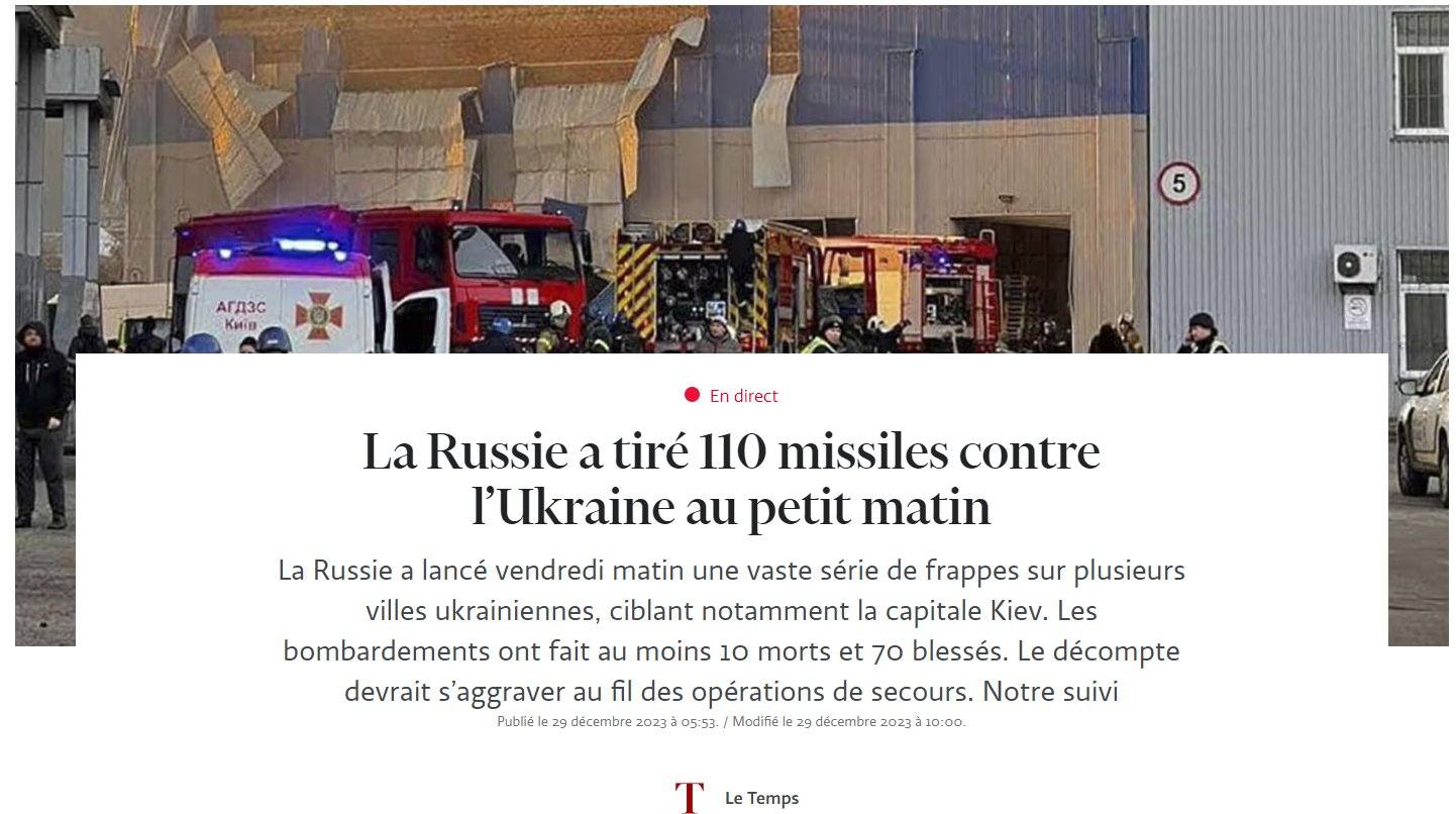 Annee 2023 , ce round est attribuée à la Russie , les faits rien que les faits, le déni, l’idéologie, le plaisir ou déplaisir n’y changera rien , la propagande , des plus stupides en l’occurrence, y changera peu, la mise en place d’une dictature d’abord française et européenne ne fera que précipiter les choses car à force de charger la barque …, ww3 , ils la veulent. Au fou !