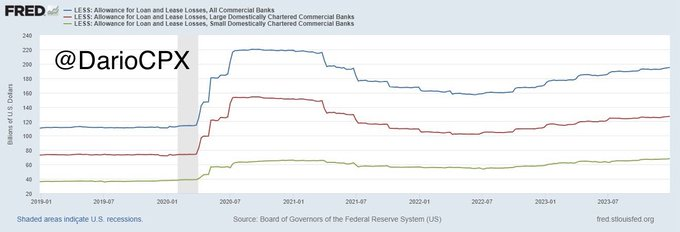 Même sans tenir compte des « pertes sur papier » qui devraient actuellement avoisiner les 500 milliards de dollars pour les actifs du Trésor américain et les 150 milliards de dollars pour les prêts immobiliers commerciaux, le montant actuel des provisions pour pertes sur créances divulguées par les banques est déjà presque revenu à la normale. jusqu’aux pics de COVID de 2020.