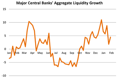 Major Central Banks’ Liquidity Growth Ticks Higher
