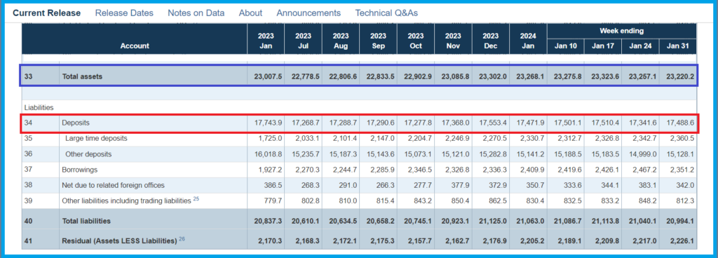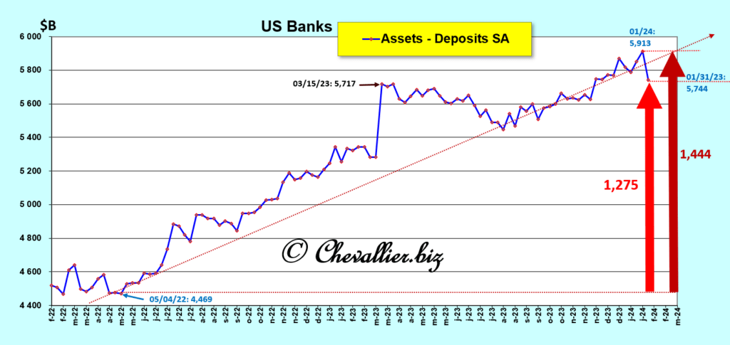 L’écart entre les actifs et les dépôts augmente donc fortement depuis le 4 mai 2022 pour fluctuer entre 1 275 (au 31 janvier) et 1 444 milliards de dollars au 24 janvier dernier,