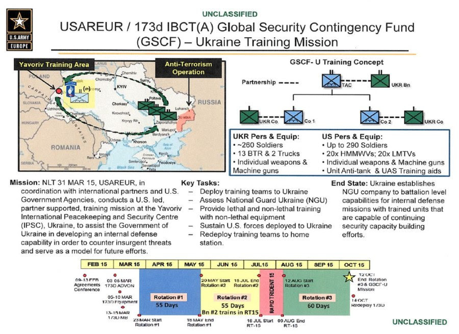 Mais pour rappeler que les troupes de l’OTAN étaient déjà présentes en Ukraine, il y a cette nouvelle note avec des cartes complémentaires montrant les opérations américaines depuis 2014 :