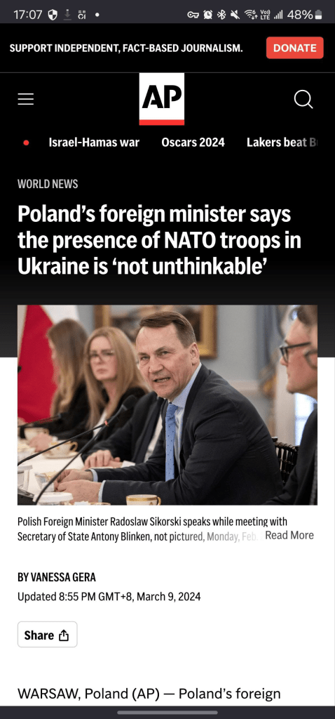 Il a même affirmé que les troupes de l’OTAN étaient déjà en Ukraine de toute façon :