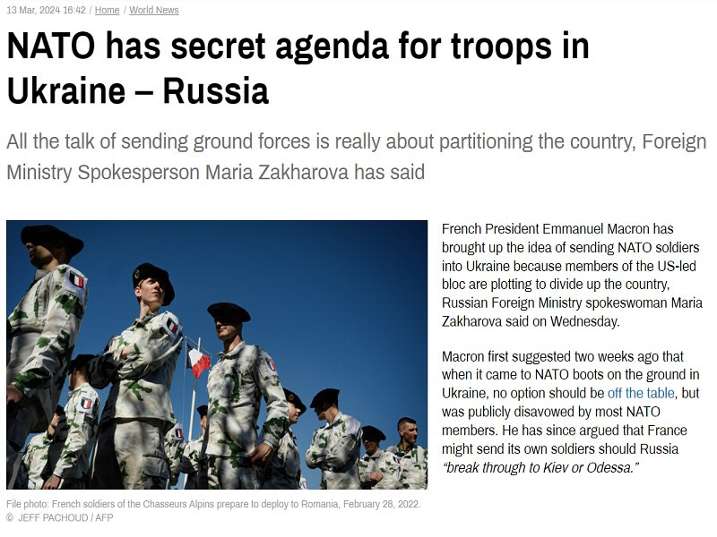 La porte-parole du ministère russe des Affaires étrangères, Maria Zakharova, a mis en garde contre la partition imminente de l’Ukraine. Selon elle , « toutes ces déclarations faites par Macron et d’autres hommes politiques de l’OTAN sur la possibilité d’introduire des contingents ou des sortes d’unités paramilitaires sur le territoire de l’Ukraine sont liées à la partition de ce qu’ils considèrent comme les restes de l’Ukraine… ils sont prêts à occuper et à diviser l’Ukraine. Ce qu’elle n’a pas mentionné, cependant, c’est qu’il s’agira probablement d’une cloison asymétrique.