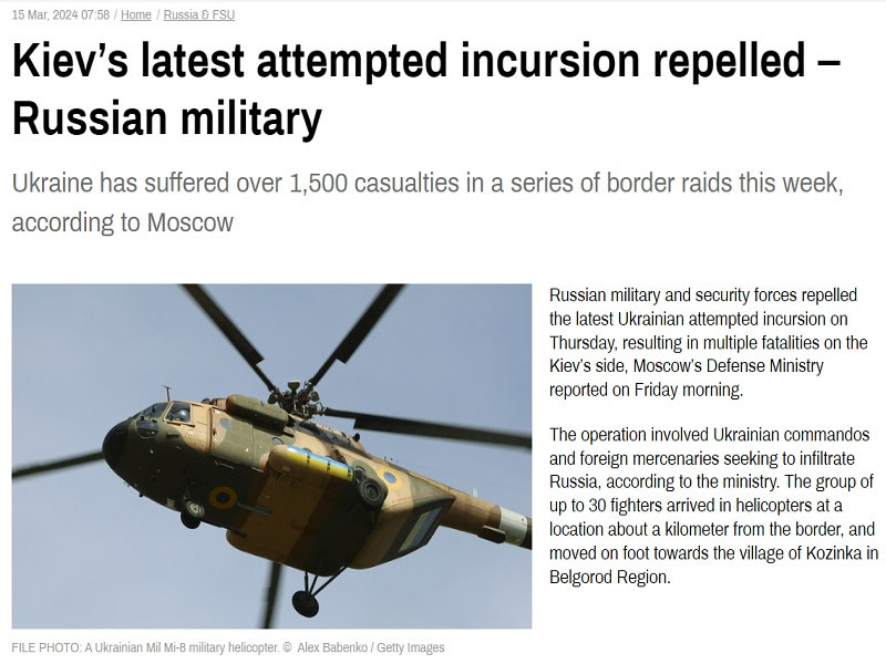 Le ministère russe de la Défense a confirmé que le dernier raid terroriste transfrontalier de l’Ukraine contre la région de Belgorod, dont les images présumées auraient été filmées en Ukraine bien qu’elles aient été présentées par certains de ses combattants comme étant russes, était un échec total.