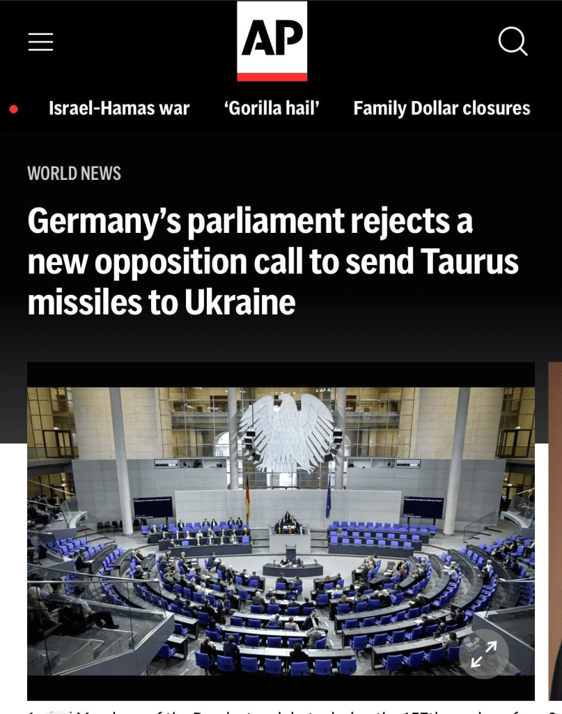 L’Allemagne le sait, c’est pourquoi le Taurus n’est pas à l’ordre du jour. Cependant, ils envisagent maintenant leur vieux jeu « circulaire » consistant à fournir le Taurus au Royaume-Uni en échange de la libération par le Royaume-Uni de ses stocks restants de Storm Shadow vers l’Ukraine, etc.