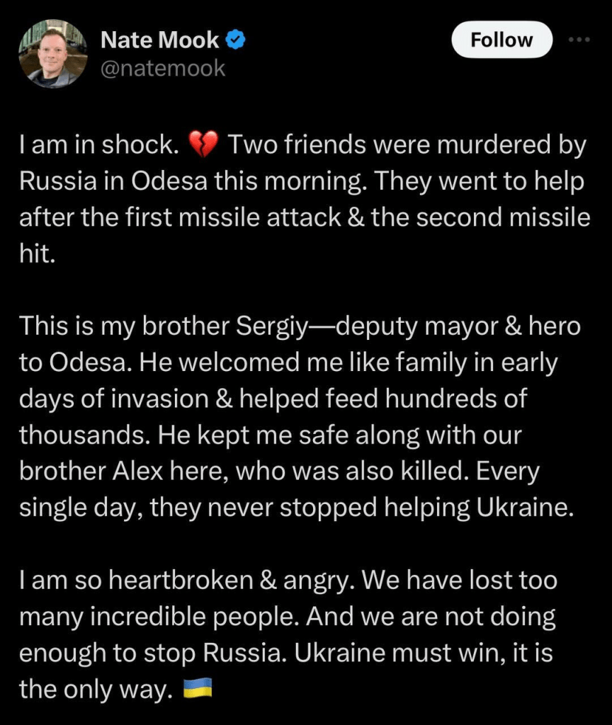 La frappe de missile d’aujourd’hui à Odessa visait une installation où s’étaient rassemblés des militaires ou des policiers.