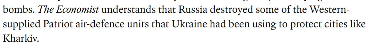 Ils semblent en outre admettre que la Russie a détruit les systèmes Patriot gardant Kharkov