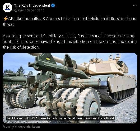 l’Ukraine a  officiellement retiré les Abrams du front parce qu’ils se sont révélés inefficaces.