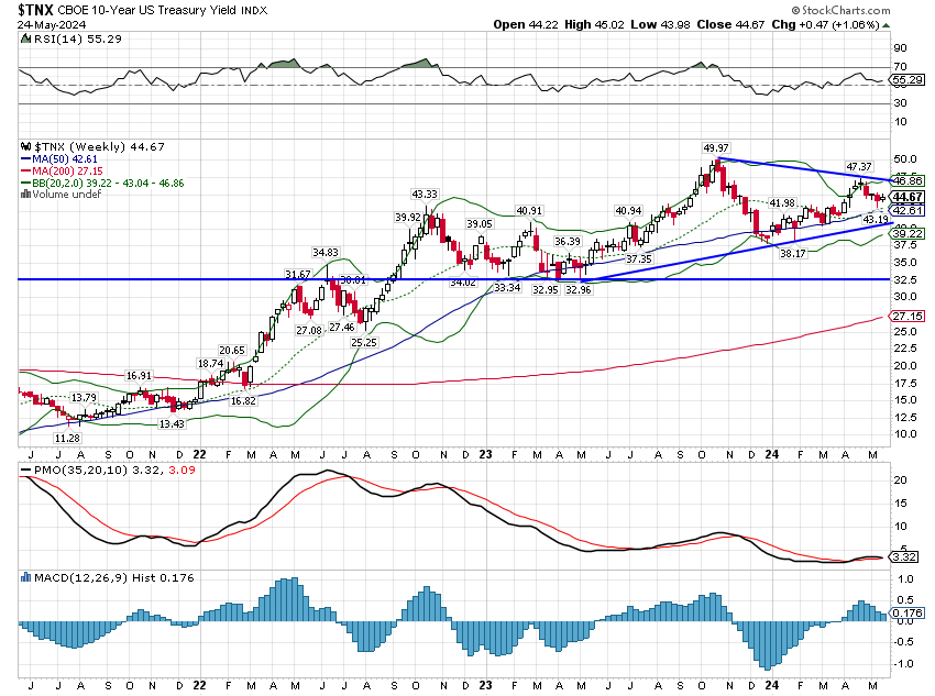 Les tendances des taux et du dollar n’ont pas changé, mais comme je le dis depuis plus d’un an, les deux semblent atteindre un sommet.
