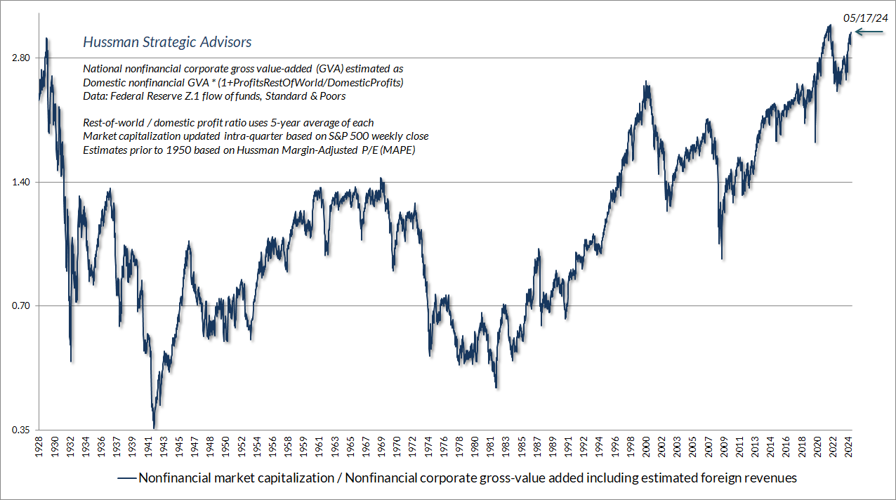 Je pense également que le S&P 500 pourrait perdre quelque chose de l’ordre de 50 à 70 % à la fin de ce cycle, simplement pour ramener les rendements attendus à long terme aux normes ordinaires que les investisseurs associent aux actions. Pourtant, comme je le note également dans presque tous les commentaires de marché, généralement avec le mot « catégoriquement », rien dans notre discipline d’investissement ne repose sur une quelconque prévision de l’évolution du marché à court terme, ni sur un retour des valorisations à leurs normes historiques à long terme.