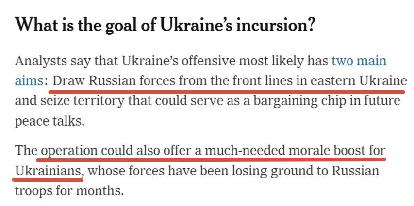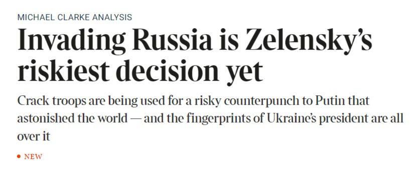De nombreux analystes pro-UA et médias occidentaux continuent d’exprimer leur perplexité face aux objectifs précis de l’opération de Koursk . D’autres ont décidé de la considérer comme une opération déstabilisatrice majeure :