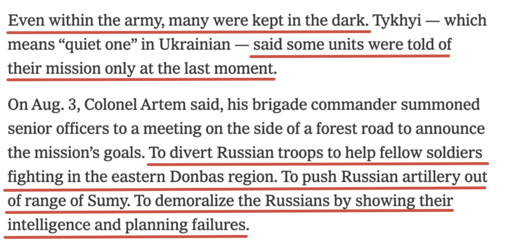 Un nouvel article du WSJ a approfondi la question , en répondant en partie à l’une des plus grandes questions qui nous préoccupent : où l’Ukraine a-t-elle obtenu ses troupes et comment a-t-elle organisé l’offensive sous le nez de la Russie ?