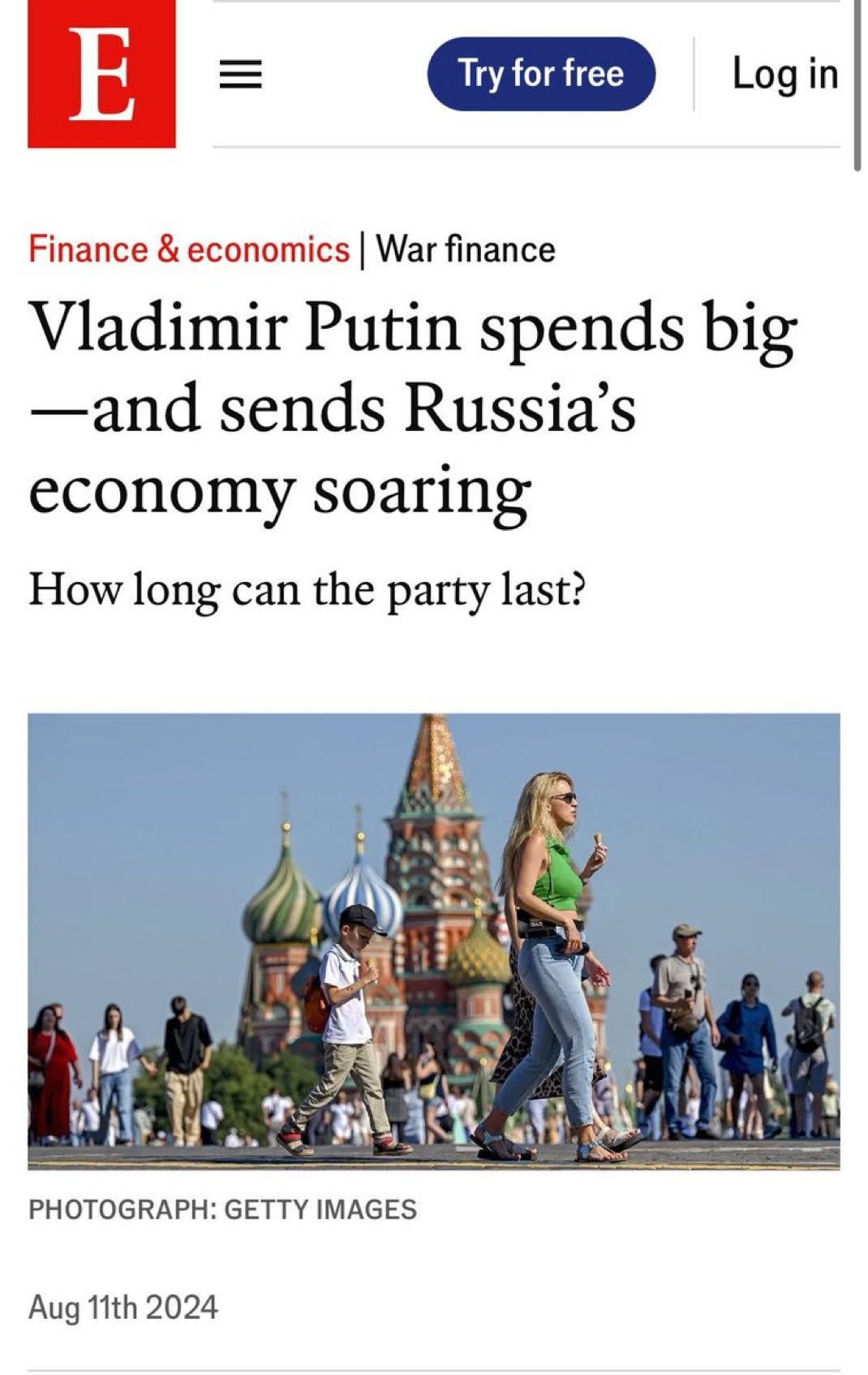 Cette année, le PIB russe devrait augmenter de plus de 3 % en termes réels, soit plus vite que 95 % des pays riches. En mai et juin, l’activité économique a « considérablement augmenté », selon la banque centrale. D’autres mesures de l’activité en « temps réel », dont une publiée par la banque Goldman Sachs, suggèrent que l’économie accélère (voir graphique 1). Le chômage est proche de son plus bas historique ; le rouble se porte bien. Certes, l’inflation est trop élevée – en juin, les prix ont augmenté de 8,6 % sur un an, bien au-dessus de l’objectif de 4 % de la banque centrale – mais avec des revenus en espèces en hausse de 14 % sur un an, le pouvoir d’achat des Russes augmente rapidement. Contrairement à presque tout le monde, les Russes sont satisfaits de l’économie.