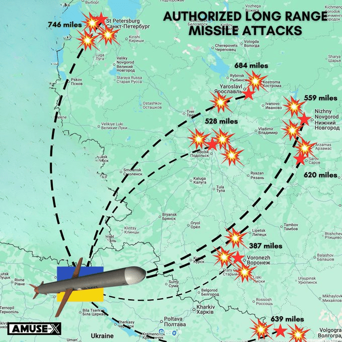 Sur la question de l’autorisation qui serait donnée à Kiev de tirer des missiles à longue portée sur la Russie; ce n’est pas clair , tout reste confus et rien n’est acquis.