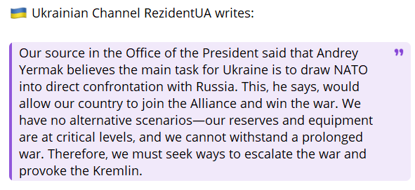 De quelle preuve supplémentaire avez-vous besoin pour prouver que l’OTAN est bien plus démilitarisée par ce conflit que la Russie, comme elle le prétend si souvent ? Cela est particulièrement vrai à la lumière de l’alarmisme suscité par les dernières frappes contre l’arsenal russe Toropets. J’ai écrit cela hier sur X et je le répète ici :