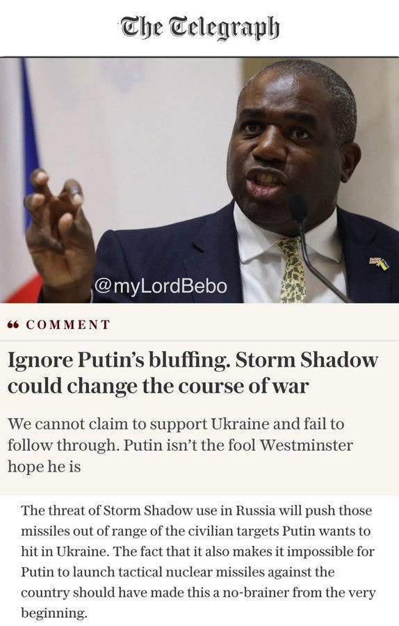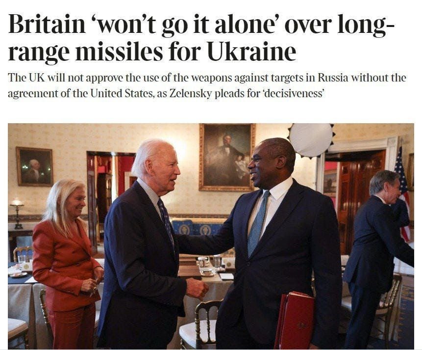 Des négociations acharnées ont lieu en coulisses, dont la principale conclusion est que le Royaume-Uni refuse absolument de « faire cavalier seul » sans que les États-Unis n’autorisent également des frappes en profondeur. Cela corrobore ce que je dis depuis longtemps, à savoir que le Royaume-Uni est la nation la plus lâche de toutes, se pavanant plus que quiconque face à la Russie, mais seulement lorsqu’il bénéficie du soutien total de la mère patrie américaine